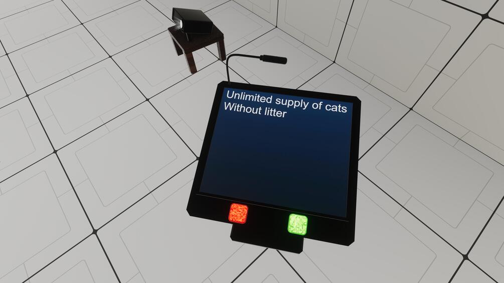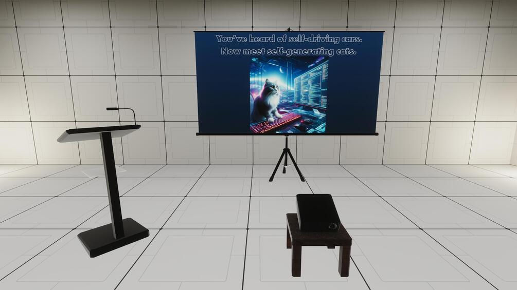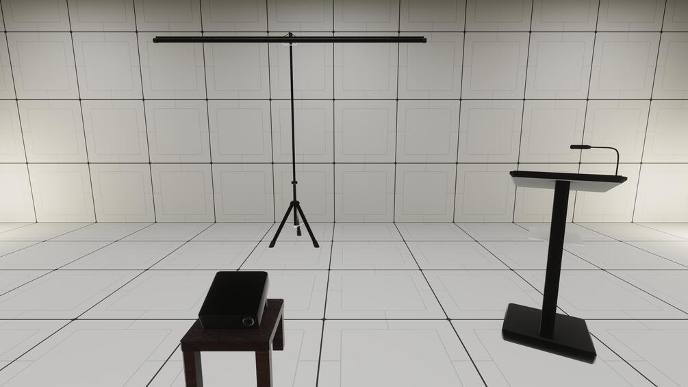 - The projection screen and the buttons on the table are interactable, letting you control the slides directly.